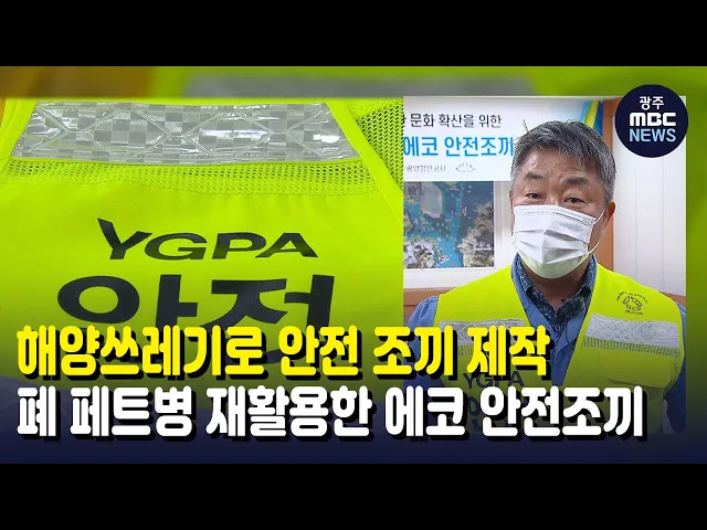 (앵커)최근 해양쓰레기로 인한 바다 환경 파괴 문제가 심각한데요. 바다 쓰레기를 버리지 않고 안전조끼 제작 등 재활용에 나서 눈길을 모으고 있습니다.김주희 기자가 보도합니다. (기자)여수 신항 앞바다입니다. 패트병 등 각종 해양 쓰레기들이 파도에 밀려 방파제 인근에 쌓여 있습니다. 한해 광양항 일원에서 수거되는...