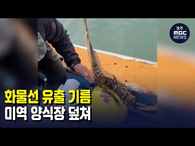 (앵커)세월호가 침몰했던 진도 동거차도 앞바다미역 양식장이 기름으로 뒤덮혔습니다.대형 화물선에서 기름이 유출된 건데어민들은 한해 농사를 망쳤다며 망연자실해하고 있습니다.양정은기자가 보도합니다.(기자)검은 폐유 덩어리들이 바다에 둥둥 떠다닙니다.미역 양식장 주변에도 새카만 기름이 가득합니다.* 양식 어민"...