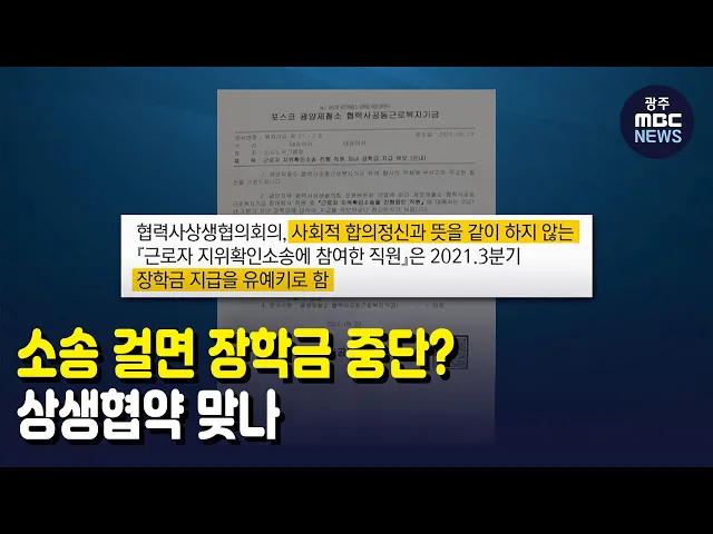 (앵커)지난 6월, 광양포스코와 협력업체들은 상생 협력의 취지로 하청업체 직원의 자녀들에게 학자금을 지원하기로 협의했었는데요.그런데, 상생이란 취지와 달리포스코에 정규직 지위 인정 소송을 제기한 하청 직원들이 학자금 지원 대상에서 제외돼 논란이 일고 있습니다.강서영 기자입니다.(기자)지난 6월, 포스코와 포...