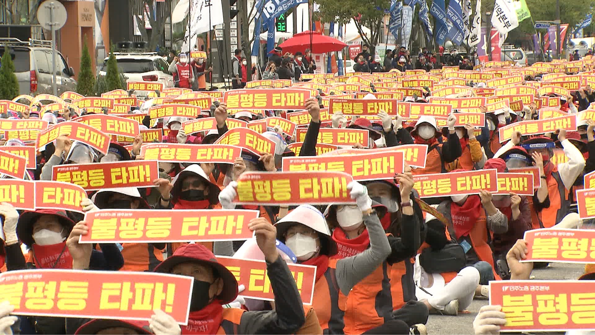 불평등 체제 타파를 기치로 내건 민주노총 총 파업 집회가 광주에서도 열렸습니다. 민주노총 광주본부는 어제(20) 광주시청 앞 도로에서 조합원 3천여명이 참가한 가운데 총파업대회를 열고지난 5년간 우리 사회에 불평등과 불공정으로 인한 양극화가더 커졌다고 비판하며 비정규직 철폐와 공공성 강화를 촉구했습니다. 집...
