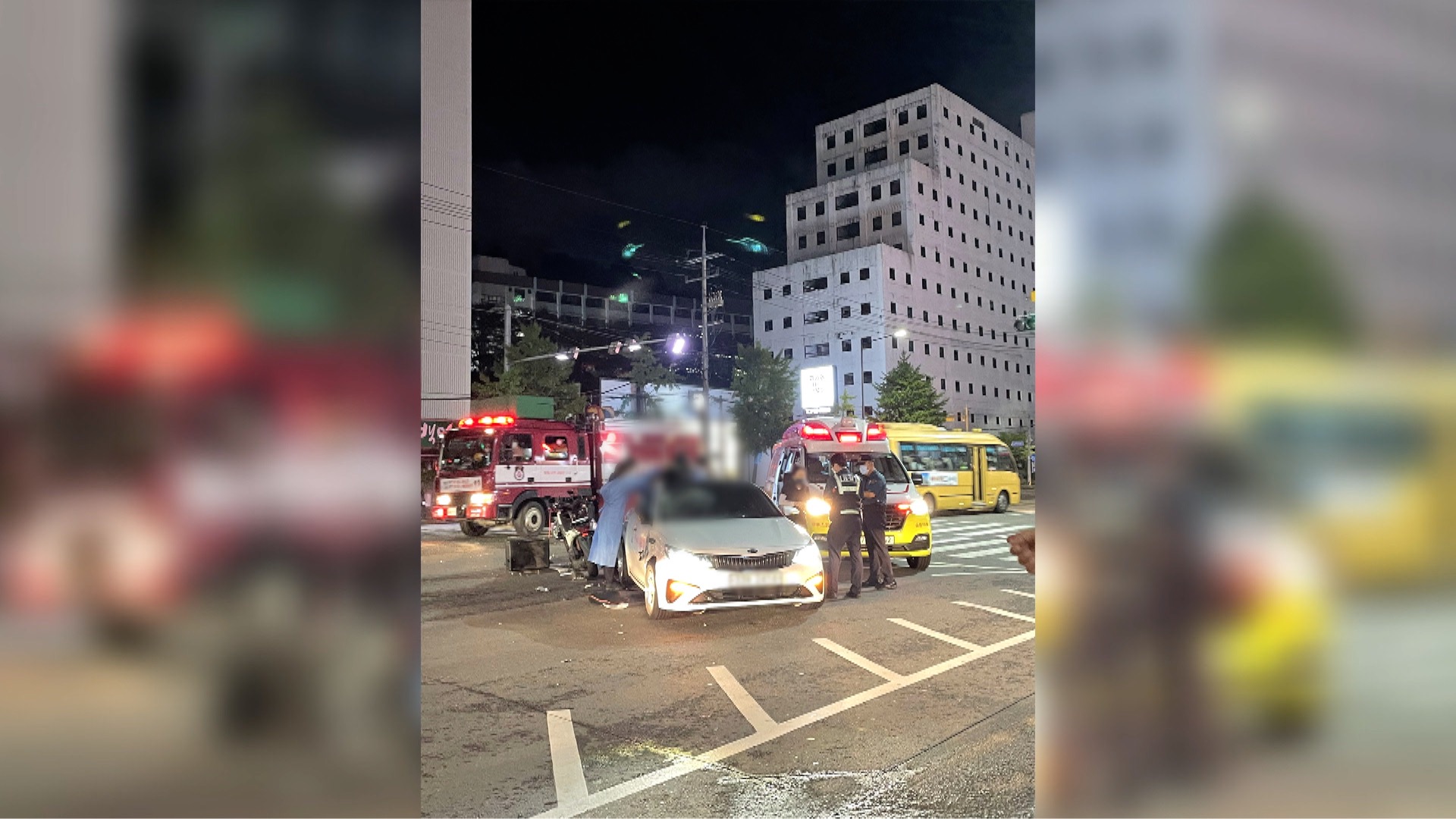 주월동 삼거리서 오토바이와 승용차 충돌..2명 부상