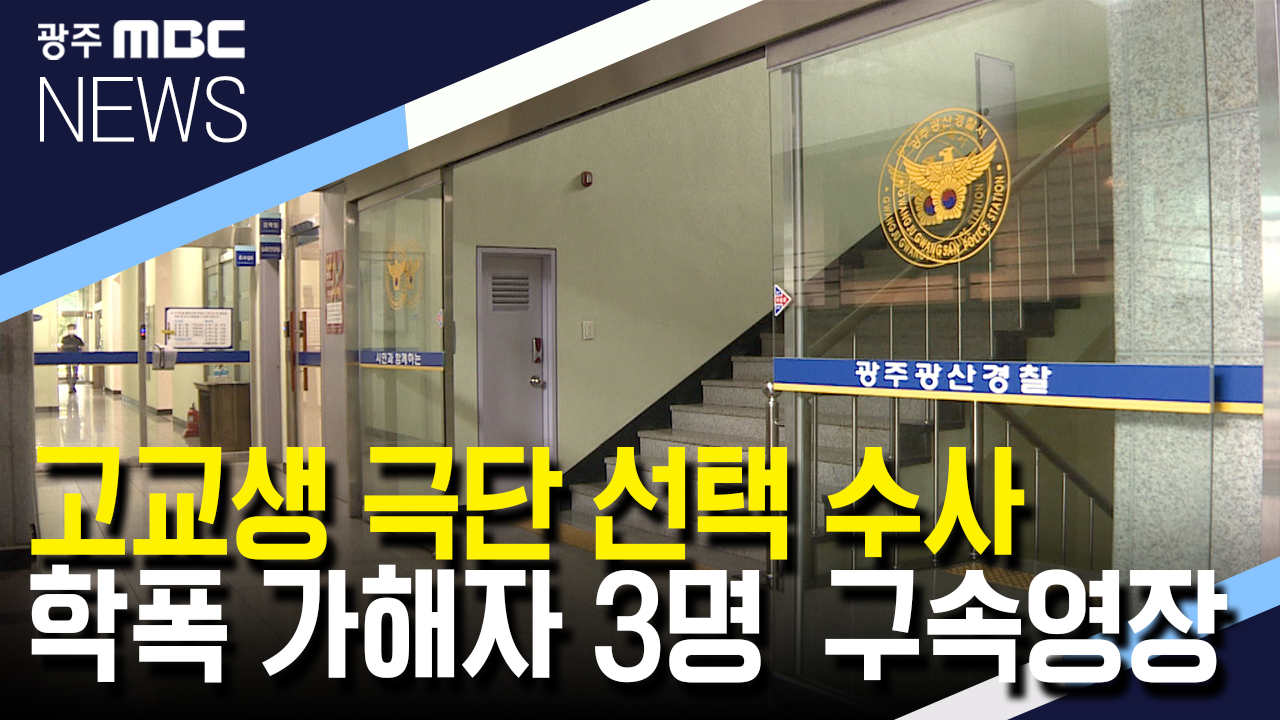 학교폭력에 시달리던 고교생이극단적인 선택을 한 사건과 관련해,가해 학생 3명에 대한 구속영장이 신청됐습니다. 광주 광산경찰서는 지난달 29일 광산구의 한 야산에서숨진채 발견된 18살 A군을장기간 괴롭히고 폭행하는 등학교폭력을 주도해온 혐의로 같은학교 학생 3명에 대해 구속영장을 신청했습니다. 경찰은 A군에 대...