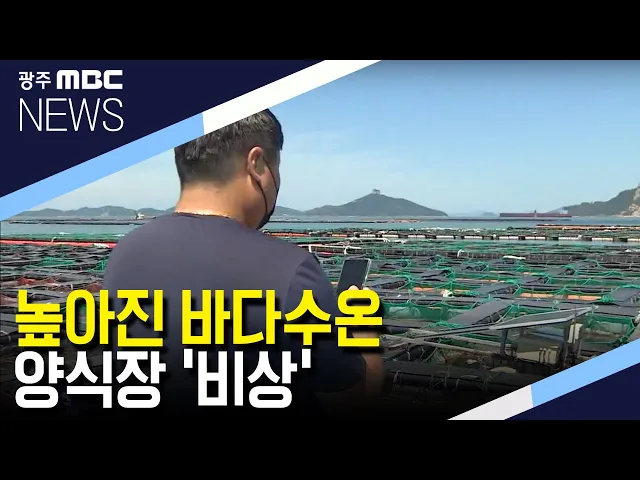 (앵커) 연일 찜통 더위가 이어지면서 바다물의 온도도 높아지고 있습니다. 바다에 설치된 가두리 양식장에서는 고수온 피해를 막기 위해 출하를 서두르는 등 피해방지에 나서고 있습니다.김 윤 기자가 취재했습니다.(기자) 고수온 주의보가 내려진 진도 해역 전복가두리 양식장입니다. 양식장 중앙에 설치된 자동온도측정 ...
