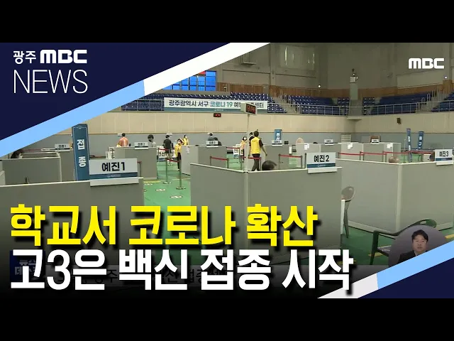 (앵커) 여러분 안녕하십니까 광주mbc 뉴스데스큽니다. 수능을 앞둔 고3 학생들과 교직원을 대상으로 코로나19 백신 접종이 시작됐습니다. 하지만 접종 일정이 잡히지 않은 나머지 학생들 사이에선 확진자가 속출하고 있어 교실 내 확산의 우려가 높습니다. 이다현 기자가 보도합니다. (기자) 티셔츠와 체육복 차림을 한 학...