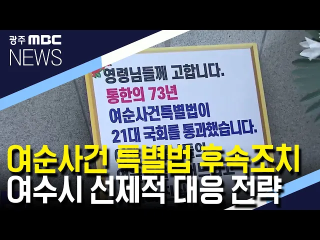 ◀ANC▶ 지난달말 여순사건 특별법이 제정돼 73년, 지역의 한이 풀렸습니다. 그러나, 그 기쁨 뒤에는 시일이 촉박한 후속조치와 함께 플어야 할 과제들이 산적해 있습니다. 여수시가 발빠른 조직개편을 통해 후속조치 지원활동에 들어갔습니다. 최우식 기자가 보도합니다. ◀VCR▶ 여순.순천 10.19사건 특별법의 제정은 7...