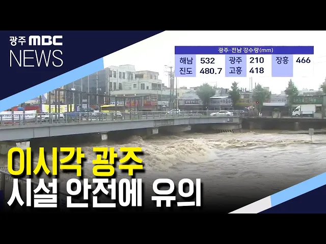 ◀ 앵 커 ▶ 광주*전남에는 어제(6) 기록적인 집중호우가 내렸습니다. 현재 일부 지역에 비가 내리고 있지만 우려했던 집중호우는 없는 상태입니다. 광주천에 나가있는 취재기자 연결합니다. 우종훈 기자 지금 상황 어떤가요? ◀ st-up ▶ 네, 광주 양동교에 나와있습니다. 어제(6) 밤 소강상태를 보이던 비는 새벽부터 다시 굵...