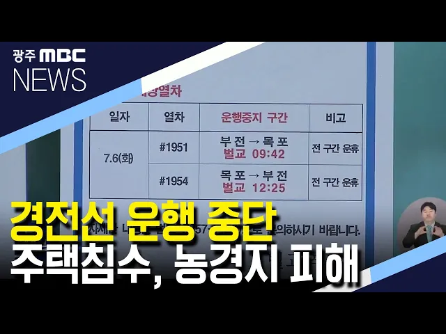 경전선 운행 중단.. 주택침수, 농경지 피해