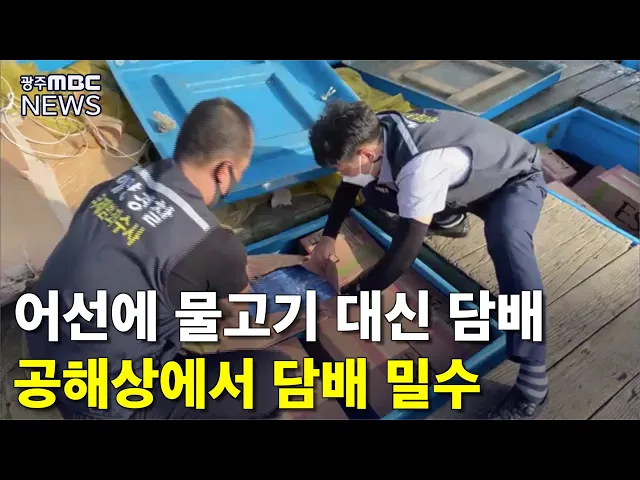 ◀ANC▶ 금어기에 어획물 운반선을 검문했더니 물고기 대신 담배가 가득했습니다. 이들은 담배를 잡은 물고기처럼 속여 몰래 들여오다 해경에 덜미가 잡혔습니다. 김안수 기자가 취재했습니다. ◀END▶ 전남 신안군 가거도 인근 공해상을 지나던 선박에 경비함정이 접근합니다. 39톤 급 어획물 운반선의 창고마다 물고기 ...