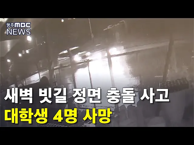 ◀ANC▶ 20대 대학생 6명이 새벽에 함께 차를 타고 가다 마주오던 차량과 충돌해 4명이 숨졌습니다. 사고가 난 곳은 시속 50킬로미터 속도 제한도로였는데, 경찰은, 승용차 운전자의 과속 여부와 음주 운전에 대해 조사하고 있습니다. 강서영 기자입니다. ◀VCR▶ 비가 내리던 오늘(18) 새벽 4시쯤. 순천시 용당동의 한 ...