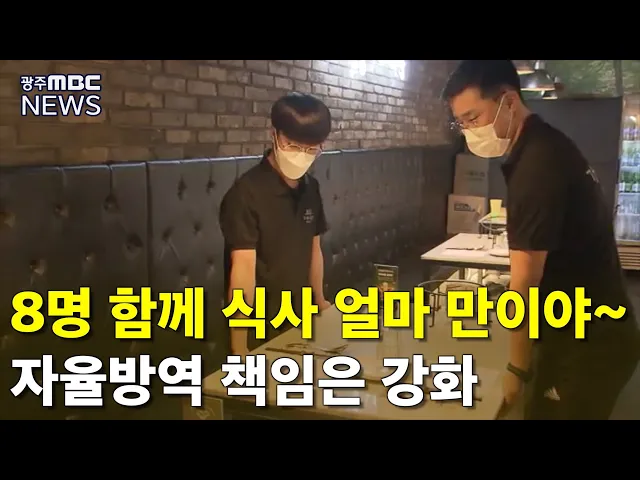 (앵커) 내일부터는 광주에서 8명까지 사적모임이 가능해집니다. 모든 업종에서 인원규제를 완화한 건 광주시가 전국에서 처음인데요. 5명 이상 모일 수 없도록 인원 수를 제한한 지 다섯달여 만인데 소상공인들은 환영하고 있습니다. 송정근 기자입니다. (기자) 광주의 한 음식점. 5명 이상 모여서 식사를 할 수 없다보니 ...