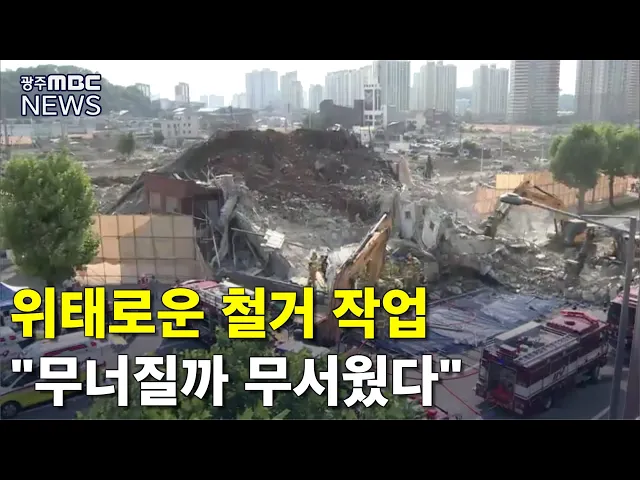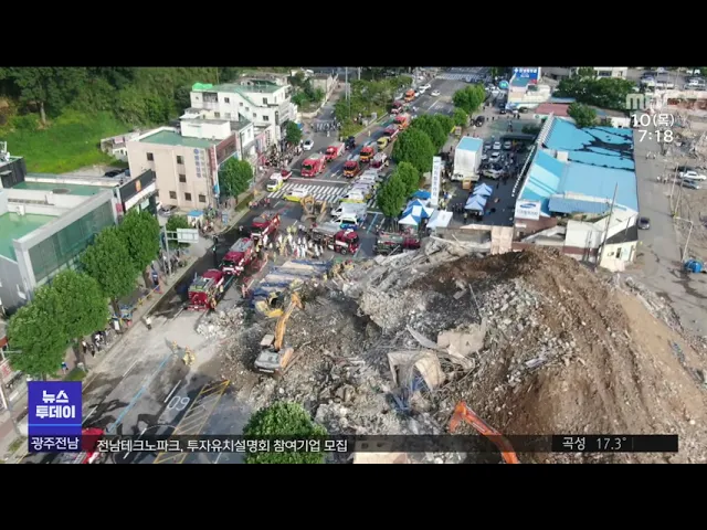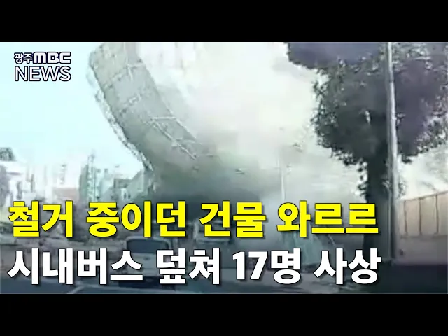 (앵커) 여러분 안녕하십니까 광주mbc 뉴스데스큽니다. 오늘 광주 학동의 한 재개발 현장에서 철거 중이던 5층 건물이 갑자기 무너져, 바로 옆 버스정류장의 시내버스를 덮쳤습니다. 매몰된 버스에서 현재까지 구조된 17명 가운데 9명이 숨지고, 8명이 중상을 입었습니다. 먼저, 송정근 기자가 보도합니다. (기자) ◀ 앵 커 ▶...