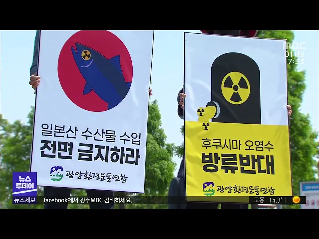 ◀ANC▶ 제26회 바다의 날을 맞아 일본 방사능 오염수의 해양 방류 계획 철회를 요구하는 지역 어민들의 대규모 해상 시위가 열렸습니다. 또 해양 자원 보존을 위한 대규모 방류도 이어졌습니다. 김주희 기자가 보도합니다. ◀END▶ 광양만 해상에 백여척의 어선들이 대형을 이루고 있습니다. 가상 일본 선박이 방사능 오...