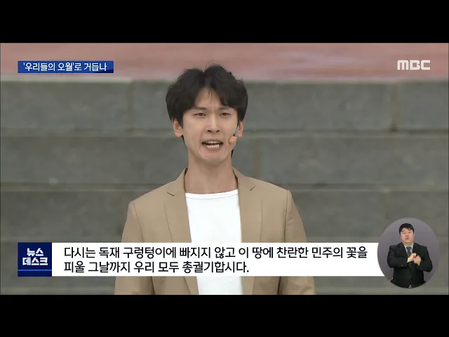 (앵커) 여러분 안녕하십니까 광주mbc 뉴스데스큽니다. 제 41주년 5.18 민주화 운동 기념식이 5.18국립묘지에서 열렸습니다. '우리들의 오월'이라는 주제로 열린 이번 기념식은 광주의 오월이 더이상 광주만의 오월이 아님을 일깨워줬습니다. 송정근 기자입니다. (기자) 우리나라 군인들이 시민을 참혹하게 구타하는 믿을 수...
