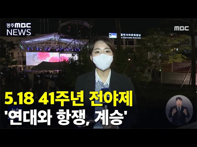 (앵커) 여러분 안녕하십니까 광주mbc 뉴스데스큽니다. 41주년 5.18광주민주화운동 기념일을 하루 앞두고 이 시각 광주 금남로에서 전야제가 열리고 있습니다. 지난해에는 코로나19로 취소됐었죠. 올해도 방역 때문에 예년보다 대폭 축소된 채 진행되고 있습니다. 현장을 연결해 보겠습니다. 이다현 기자, 지금 그곳 분위기 ...