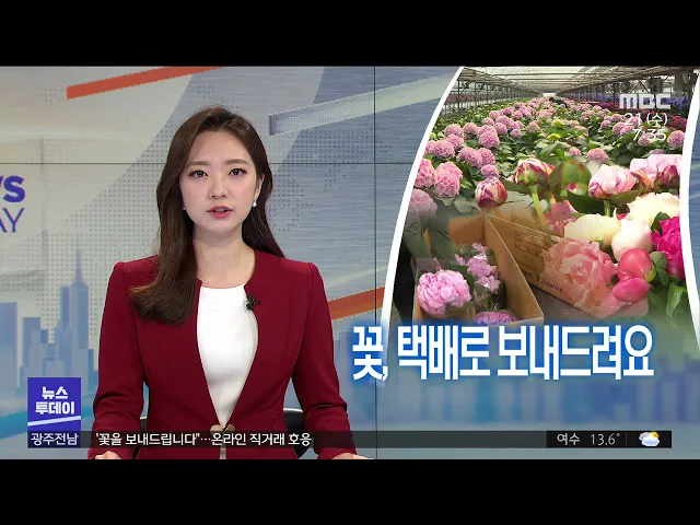 ◀ANC▶ 화훼 주산지 자치단체가 택배로 꽃을 보내는 온라인 마케팅을 도입해 호응을 얻고 있습니다. 직거래로 이뤄지다보니 소비자들은 싼 가격에 꽃을 구입할 수 있고, 코로나19로 시름하는 농가는 판로 확보로 힘을 얻고 있습니다. 김양훈 기자가 취재했습니다. ◀END▶ 전남 강진의 한 화훼농가 비닐하우스 안에 빨강...