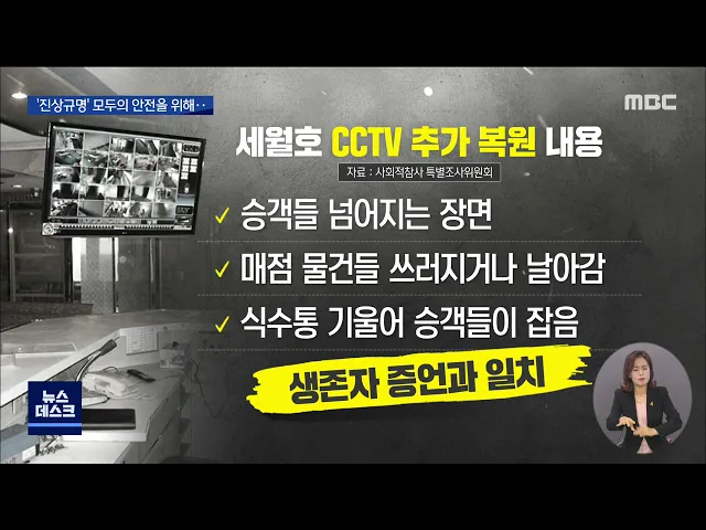 ◀ANC▶ 7년이 지났지만 세월호의 항적과 선체 내부 CCTV 등 참사 관련 증거들은 조작의혹을 벗지 못하고 있습니다. 침몰 원인을 밝히는데 가장 기본적인 증거들을 다시 짚어보며 진상규명은 조금씩 나아가고 있습니다. 양현승 기자의 보돕니다. ◀END▶ ◀VCR▶ 세월호에 설치돼있던 CCTV는 모두 64개입니다. 화면 일부...