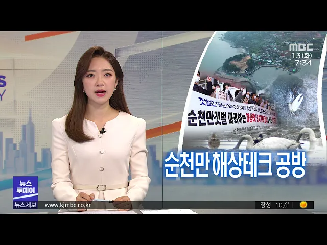 ◀ANC▶ 철새의 낙원이자 바다 생태계의 보고인 순천만에 해상 데크를 건설하는 사업이 추진돼 논란이 일고 있습니다. 마을 주민들은 관광 소득을 기대하며 찬성하고 있지만, 환경단체는 생태도시라는 슬로건에 역행하는 사업이라며 반발하고 있습니다. 조희원 기자입니다. ◀VCR▶ 구불구불한 리아스식 해안선을 따라 광...