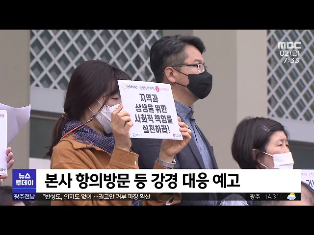 ◀ANC▶ 여수산단 입주 기업들이 민·관 거버넌스의 권고안을 거부한 것을 두고 파장이 커지고 있습니다. 시민사회단체들은 반성하는 모습도, 개선의 의지도 찾아볼 수 없다며, 사태 해결을 위해 각계 대표들이 참여하는 연석회의를 제안했습니다. 문형철 기자입니다. ◀VCR▶ 지역 시민사회단체 관계자들이 시청 앞에 모...