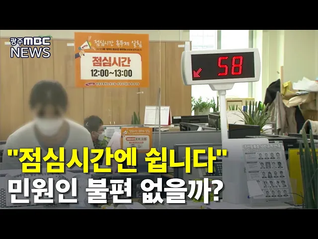 (앵커) 여러분 안녕하십니까 광주mbc 뉴스데스큽니다. 공무원 노조가 다음달부터 점심시간에는 구청 민원실과 주민센터에서 민원 업무를 하지 않기로 했습니다. 공무원들의 휴식시간을 보장하기 위해서인데요. 공무원 노조는 시행에 무리가 없다는 입장이지만, 시민들의 불편을 우려하는 목소리도 나오고 있습니다. 보도에 ...