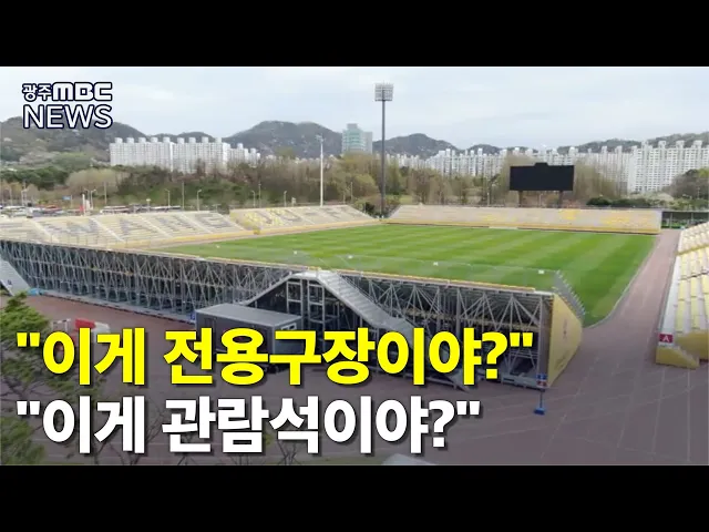 (앵커) 무늬만 축구전용구장이라는 오명을 얻은 광주FC 전용구장이 광주시의회에서도 거센 질타를 받았습니다. 적지 않은 예산이 들어갔는데도 편의시설과 관람석은 형편없는 수준이고 안전성 문제도 심각한 것으로 지적됐습니다. 이계상 기자가 보도합니다. (기자) 프로축구 시즌이 개막한 이후 광주FC 구장에는 2천 명 안...