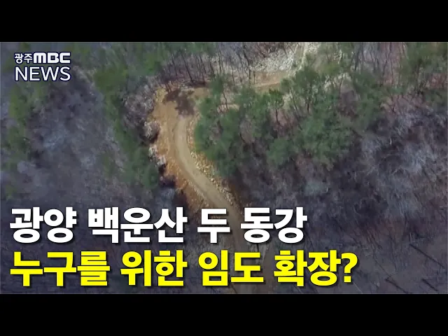 ◀ANC▶ 국립공원 지정이 추진되고 있는 광양 백운산이 임도 확장 공사로 두 동강이 났습니다. 환경단체는 자연 훼손이라며 반발하고 있습니다. 조희원 기자입니다. ◀VCR▶ 멸종위기종을 포함해 1천여 종이 넘는 동식물이 분포하는 생태의 보고, 광양 백운산. 차량 두 대가 너끈히 지나갈 수 있는 넓은 길이 산자락을 따...