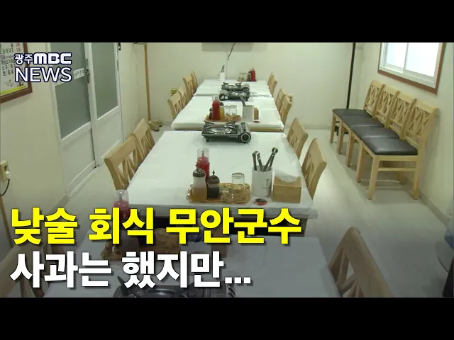◀ANC▶ 군청 간부들과 대낮에 술잔을 돌렸던 김산 무안 군수가 서면으로 사과했습니다. 조류인플루엔자 방역현장을 다녀온 뒤 담당 직원들을 격려하는 자리였다고 해명했는데요, 하필이면 식탁에 오른 음식이 청둥오리였다는 의혹 때문에 뒷말이 나오고 있습니다. 양현승 기자가 취재했습니다. ◀END▶ ◀VCR▶ 무안군...