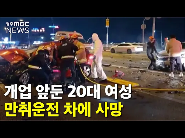 (앵커) 새해 첫 날 밤 광주에서 만취 운전자가 낸 교통 사고로 20대 여성이 숨지는 안타까운 일이 있었습니다. 한 푼 두 푼 돈을 모아 창업을 준비하던 착실한 청년이었는데요, 꽃다운 청춘의 꿈이 만취 운전에 꺾이고 말았습니다. 보도에 이다현 기자입니다. (기자) 하얀 SUV 차량이 빠른 속도로 내달리더니, 중앙선을 넘...