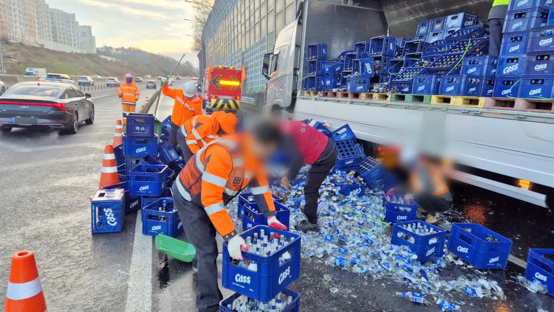 호남고속도로에 맥주 와르르..인명피해 없어