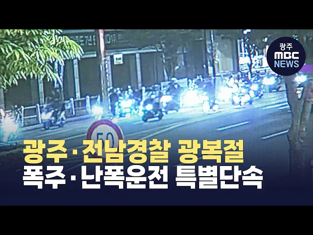 광주·전남경찰이 8.15 광복절 폭주·난폭운전 등불법행위를 특별단속하고, 적발 시 엄정 대응 하기로 했습니다.경찰은 현장 투입 가능 경력을 총 동원해 오늘(14) 밤부터 내일(15) 새벽까지광주와 전남 전역에서 순찰과 단속 활동에 나섭니다.이륜차를 이용한 불법행위와 불법구조변경 등을 비롯해 시민 안전을 위협하는 모...