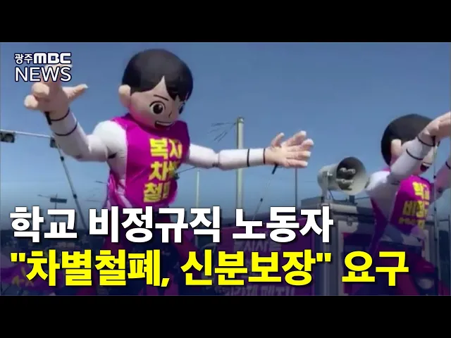 ◀ANC▶ 학교 비정규직 노동자들이 잇따라 집회를 열고 신분 보장 법제화를 요구하고 있습니다. 교육청과 협상이 진행되고 있지만 타결 전망은 불투명합니다. 김 윤 기자가 취재했습니다. ◀END▶ 전라남도 교육청 인근 도로 주변이 학교 비정규직 노동조합이 내건 플래카드로 도배돼 있습니다. 방학 중 비정규직 대책과 ...