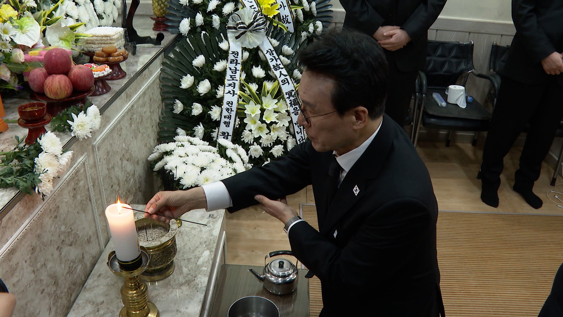 완도 냉동창고 화재 진압 도중순직한 소방관 2명의 빈소에조문이 이어지고 있습니다.김민석 국무총리와 윤호중 행정안전부 장관은오늘(13) 오전 전남 완도대성병원에 마련된두 소방관의 장례식장을 찾아희생자들에게 헌화하고,유족들을 위로했습니다.김 총리는 이 자리에서"이런 아픔이 다시 반복되지 않도록정부가 최선을 ...