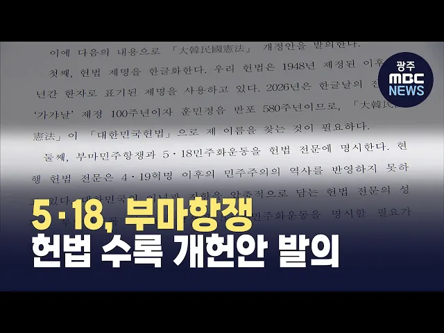 5·18기념재단은 "국민투표법 개정안이 국회를 통과함으로써 개헌 논의를 가로막아 온 제도적 장애는 해소되었다"며 5·18 정신 헌법 수록을 촉구했습니다.이들은 성명을 통해"헌법 전문에 5·18 정신을 명시하는 것은 민주주의의 근간을 부정하는 시도를 차단하고,국가폭력의 비극이 다시는 반복되지 않도록 하는 헌법적 선언...