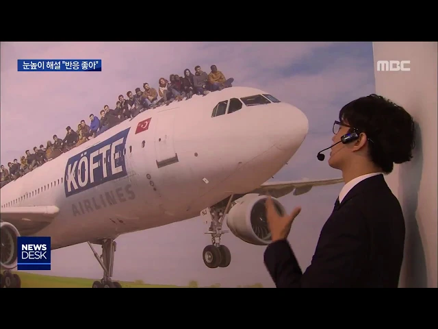 (앵커) 광주비엔날레가 개막한 이후 첫 주말을 맞아 현대미술의 축제를 즐기려는 관람객들의 발길이 이어졌습니다. 다소 난해할 수 밖에 없는 미술작품에 대해 눈높이식 해설이 좋은 반응을 얻었습니다. 이계상 기자.. (기자) 시리아의 난민들이 이륙을 준비하는 비행기 위에 앉아있습니다. 작가는 익살스러운 포스터를 통...