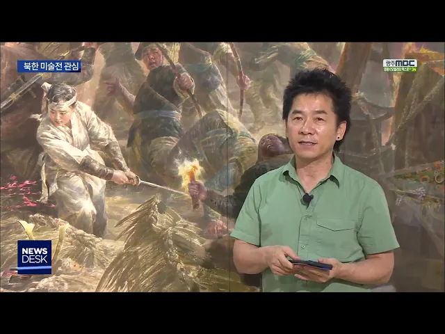 (앵커) 이번 광주비엔날레에서 북한 미술전은 관람객들의 각별한 관심을 받고 있습니다. 그동안 알려지지 않았다는 점에서 새로울 뿐 아니라 남북 화해 분위기도 관심을 불러일으키고 있습니다. 박수인 기자 (기자) 눈보라와 혹한 속에서 댐을 건설하고, 바위를 뚫어내는 고된 노동의 현장에서도 노동자들의 표정은 만족스...