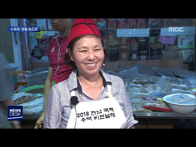 ◀ANC▶ 남도의 전통 맥을 잇는 수묵그림이 서민들의 삶이 베어있는 시장 속 난장을 찾았습니다. 잊혀져가는 수묵이 보는 예술에서 벗어나 서민들과 함께 즐기는 예술로 거듭나고 있습니가. 장용기기자가 다녀왔습니다. ◀END▶ 수 십년을 이어온 전통시장 목포자유시장에 난데없는 수묵 앞치마가 등장했습니다. 지역작가...
