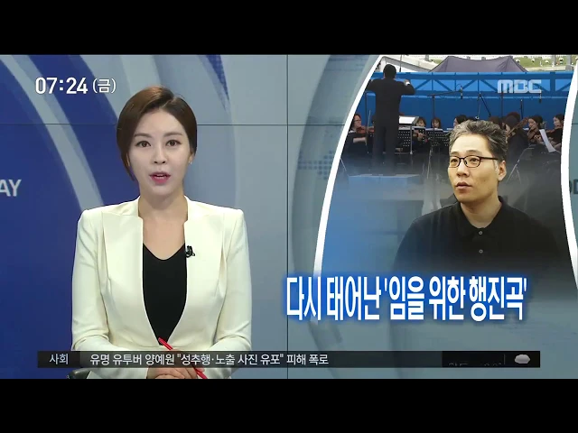 (앵커) 518 하면 떠오르는 노래, '임을 위한 행진곡'이죠. 오늘(18) 광주문화예술회관에서는 관현악으로 재탄생한 '임을 위한 행진곡'이 처음 연주됩니다. 관현악곡 제작에 참여한 황호준 작곡가를 이미지 뉴스리포터가 만나고 왔습니다. ========================================== 안녕하세요, 작곡가님 만나서 반갑습니...