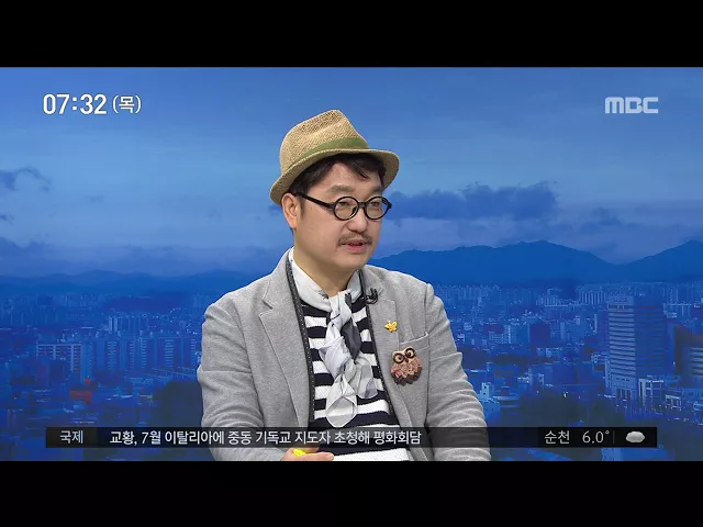 (앵커) 가 볼만한 전시와 공연들을 소개해 드리는 목요일 '이슈인 투데이' 시간입니다. 오늘은 하루 앞으로 다가온 남북 정상회담을 기념해서, 40여 년 간 '분단' 을 주제로 예술 작업을 해온 한 지역화가의 전시를 안내해드리겠습니다. 월간 광주아트가이드 서동환 대표님 나오셨습니다. 대표님, 안녕하세요? (네 안녕하세...