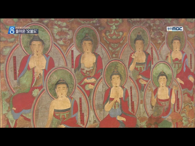 ◀ANC▶ 40여 년 전 도난당했던 '송광사 오불도'가 오늘(14) 원래 소장처인 순천 송광사로 돌아왔습니다. 송광사 도난 문화재가 회수된 것은 2천년대 들어 이번이 처음인데, 송광사 측은 보물지정을 추진할 예정입니다. 보도에 문형철 기자입니다. ◀VCR▶ 다섯 부처의 모습을 담고 있는 '송광사 오불도'입니다. 1725년 ...