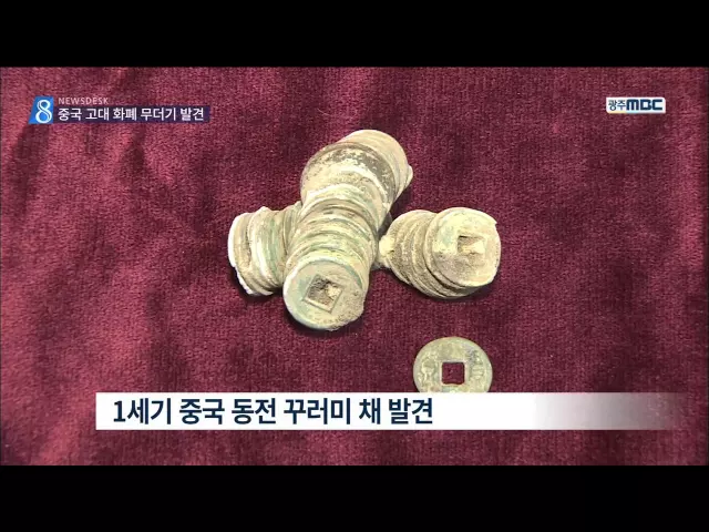 광주의 옛 무덤 유적지에서 2처년 전, 그러니까 1세기 무렵의 중국 동전이 무더기로 발견됐습니다. 영산강을 중심으로 한 한반도의 서남권이 고대 중국과의 교류 중심지였음을 보여주는 근거로 평가되고 있습니다. 박수인 기자 ◀VCR▶ 광주시 광산구의 옛 무덤 유적지에서 지난달 말 발굴된 동전입니다. 동전 앞면에 쓰인...