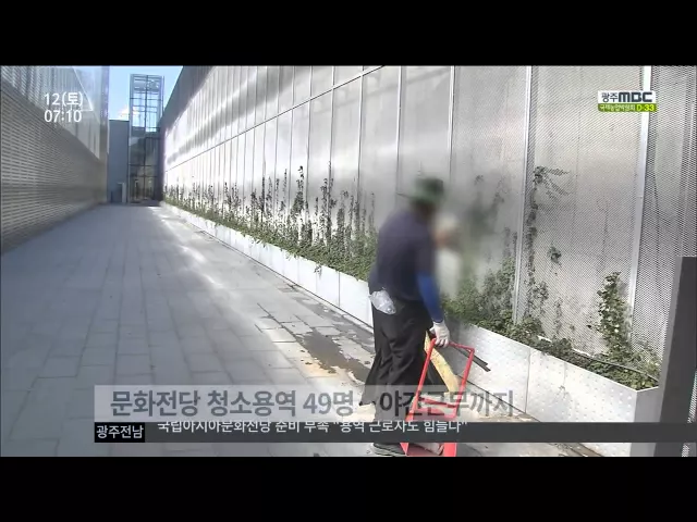 (앵커) 국립아시아문화전당이 조직을 제대로 꾸리지 못한 채 서둘러 부분개관을 하면서 여러 부작용들이 나오고 있습니다. 청소용역 근로자들부터 적은 인력과 높은 업무 강도에 고통을 호소하고 있습니다. 김인정 기자입니다. (기자) 하루종일 쉬는 시간 없이 아무리 쓸고, 닦아도 청소는 끝이 없습니다. 개관 직전까지 공...