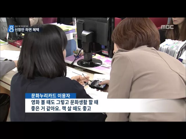 (앵커) 문화 소외 계층에게 발급하는 '문화 누리카드'라는 게 있습니다. 신청만하면 1년에 5만원까지 쓸 수 있는 유용한 카드인데 대상자 10만 명 중에 절반이 신청을 안했다고 합니다. 혜택을 누리는 방법, 김인정 기자가 알려드립니다. (기자) 영화 보기, 책 사기, 공연 보기, 여행부터 스포츠 관람까지, 쓰고 싶은 곳에 ...