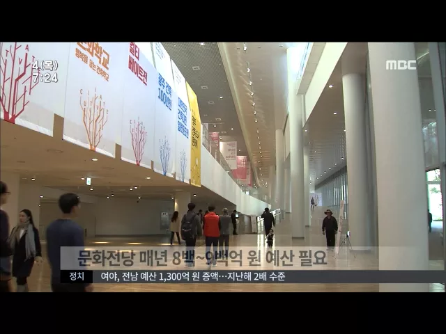 (앵커) 국립 아시아문화전당을 성공적으로 개관하고 운영하기 위해서는 정부의 예산 지원이 필요한데요, 최경환 경제부총리가 적극적인 지원을 약속했습니다. 박수인 기자가 보도합니다. ◀VCR▶ 내년에 국립 아시아문화전당에 투입될 정부 예산 8백3억여원이 국회에서 확정됐습니다. 성공적인 개관의 핵심인 콘텐츠 개발...