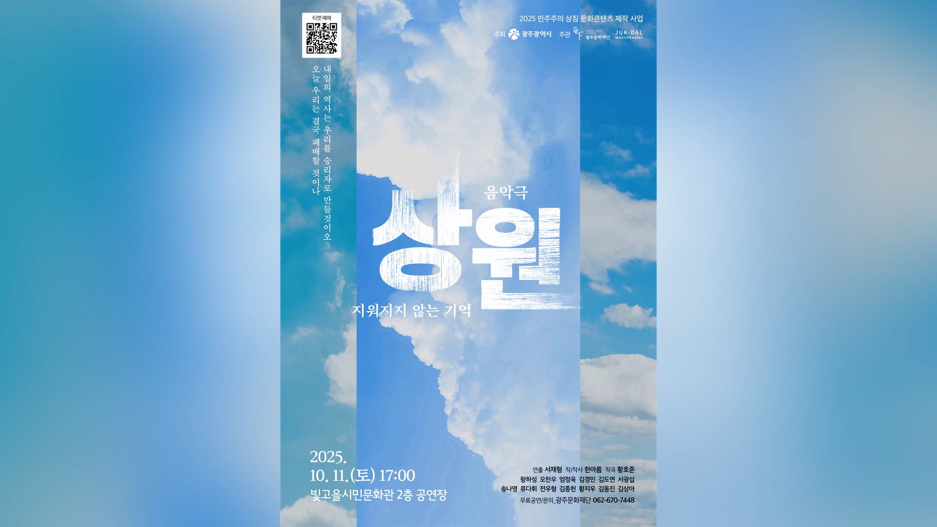 5.18 시민군 윤상원 열사를 그린 음악극 '지워지지 않는 기억'이 다음달 11일 빛고을 시민문화관에서 공연됩니다. 윤상원 열사의 삶을 바탕으로 시대의 아픔과 연대의 가치를 노래한 이 음악극은 5·18 민주화운동 40주년인 지난 2020년 초연돼 호평을 받았고 올해 새로운 배우진으로 완성도를 높여 관객과 다시 만납니다. ...