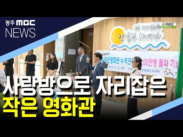◀ANC▶ 전남에 있는 7개 작은영화관의 누적 관람객이 백만명을 돌파했습니다. 인구 감소로 사라졌던 농어촌 지역 영화관이 작은 영화관으로 부활하면서 문화 사랑방 역할을 하고 있습니다. 고익수 기자가 보도합니다 ◀END▶ 지난 2015년 10월 전남에서 처음으로 문을 연 장흥 정남진 시네마, 99석을 갖춘 그야말로 작은...