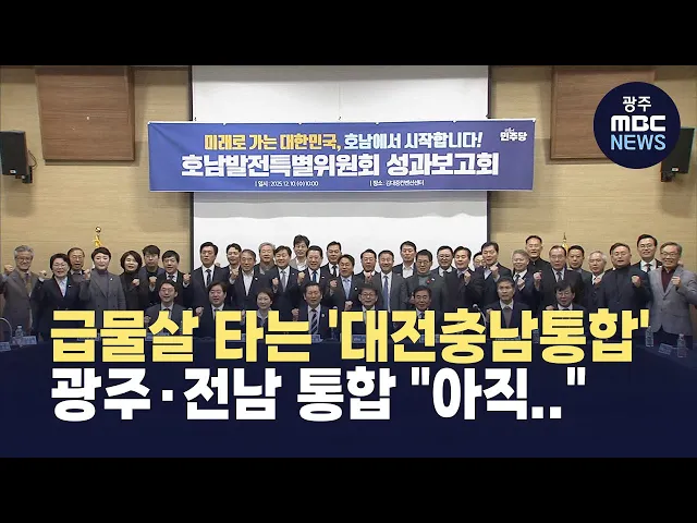 (앵커)이재명 대통령이 최근 충남 타운홀미팅에서 언급한 대전-충남 통합 문제가 화제입니다.당장 내년 지방선거를 목표로 대전충남 통합논의가 활발하게 전개되면서,이보다 먼저 광역 연합을 추진하고 있던 광주와 전남의 속내는 복잡다단합니다.김윤 기자가 취재했습니다.(기자)지난 5일 충청남도에서 열린 이재명 대통령...