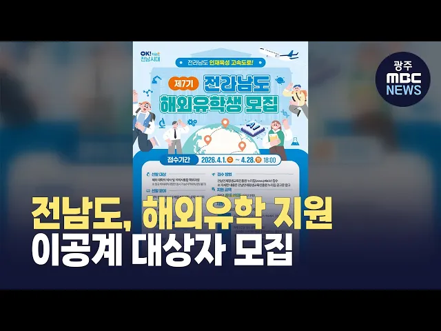전라남도가 세계 명문대 유학 기회를 제공하는‘해외 유학생 지원 사업’ 이공계 참가자를 오는 28일까지 모집합니다.해당 사업은 전남 지역 대학과 대학원생의해외 명문대 박사와 석·박사 통합과정 유학을 지원해 지역 산업 경쟁력을 이끌 고급 인재를 육성하기 위해 추진됩니다.자세한 지원 내용은 전남인재평생교육진흥원 ...