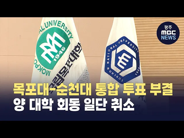 국립의대 신설을 목표로 통합을 추진했던 목포대와 순천대의 내부 구성원 투표 결과가 부결됨에 따라 오늘(24) 예정됐던 대학통합 공동추진위의 논의도 취소됐습니다.순천대는 학생 구성원 투표 부결과 관련해자체적으로 대책 논의에 들어갔으며이후 결과에 따라 양 대학의 회동이결정될 방침입니다.앞서 양 대학은 교원과 ...