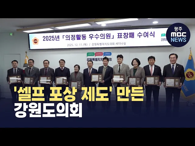 (앵커)'셀프 포상' 논란을 일으킨 강원도의회가 관련 조례 개정에 나섰는데,개정안을 자세히 살펴보니 이제는 아예 포상 대상에 도의원을 포함시켜셀프 포상 제도화까지 추진하는 것으로 확인됐습니다.춘천문화방송, 김세정 기자입니다. (기자)강원도의회가 주는 민간인 표창에 도의원이 12명이나 포함됐다는 MBC 보도 이후...
