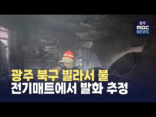 어제(9) 오전 10시 40분쯤 광주 북구 신용동의 한 빌라에서 전기 누전으로 추정되는 불이 나2시간 20분 만에 꺼졌습니다.불이 나자 주민 4명이 대피해 인명 피해는 없었지만, 빌라 한 세대가 모두 불에 탔습니다.소방당국은 전기매트에서 불이 시작됐다는 진술을 토대로 정확한 화재 원인을 조사 중입니다.