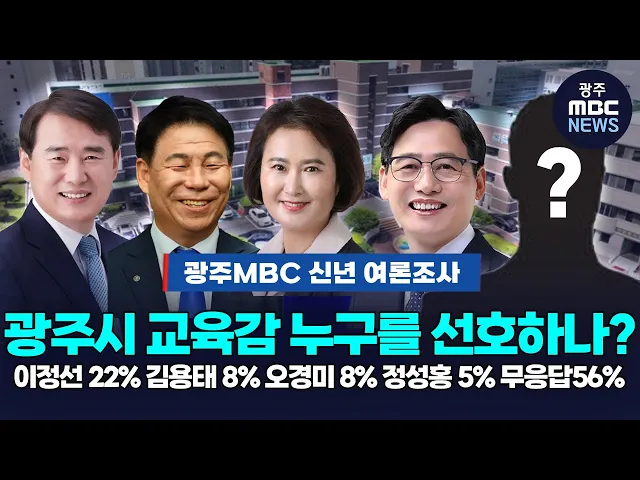 ◀ 앵 커 ▶광주MBC는 오는 6월 실시될 지방선거를 앞두고시*도 교육감 후보들에 대한 여론조사도 함께 실시했습니다.이정선·김대중, 현 시·도교육감의선호도가 우세한 가운데, 지역민 절반 가량이 여전히 마음을 정하지 않은 부동층으로 확인돼 선거막판까지 치열한 민심 경쟁이 전망됩니다.한신구 기자가 보도합니다.(기자)...
